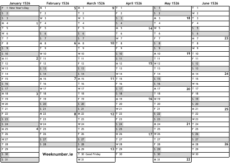 1526 calendar