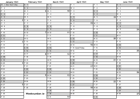 1541 calendar