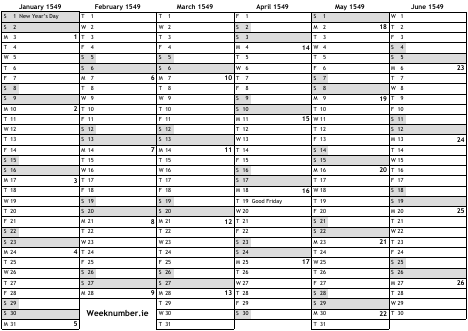 1549 calendar