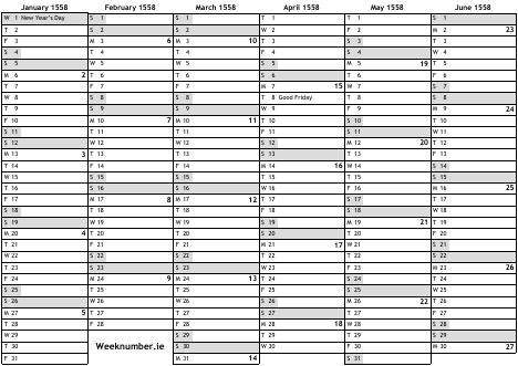 1558 calendar