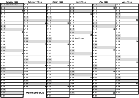 1566 calendar
