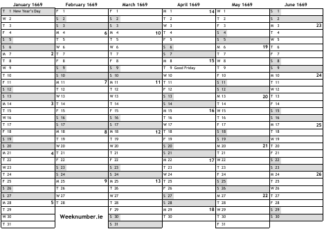 1669 calendar