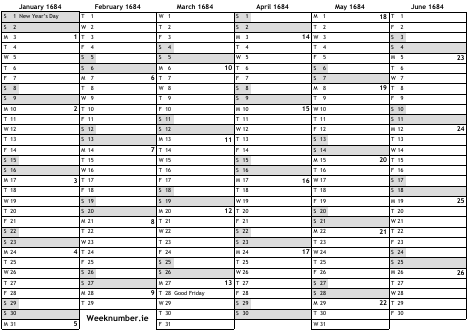 1684 calendar