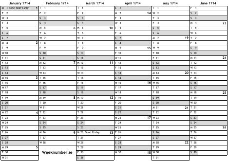 1714 calendar