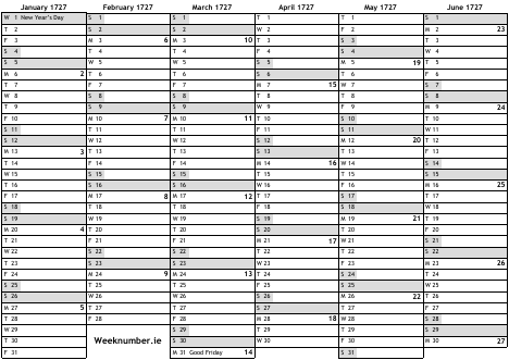 1727 calendar