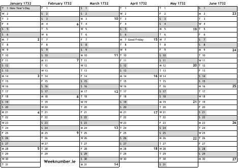 1732 calendar