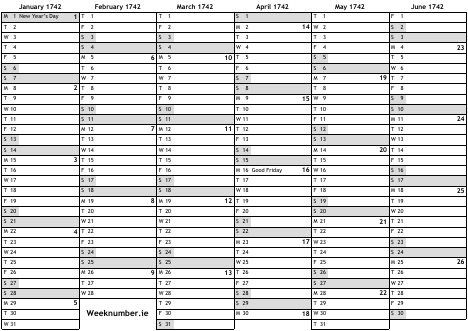 1742 calendar