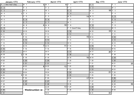 1773 calendar