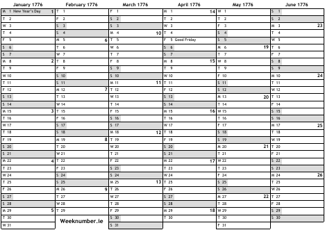 1776 calendar