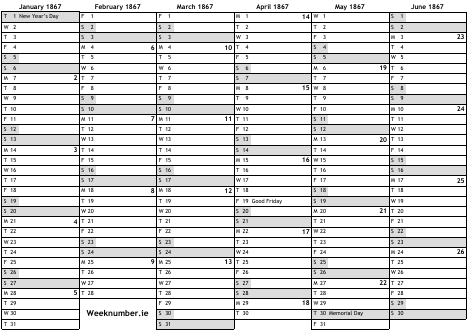 1867 calendar