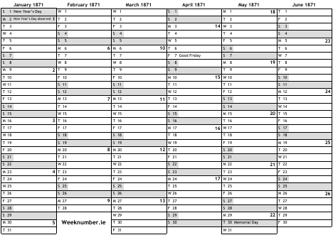 1871 calendar