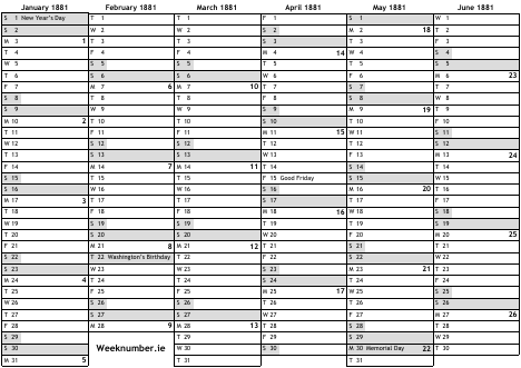 1881 calendar