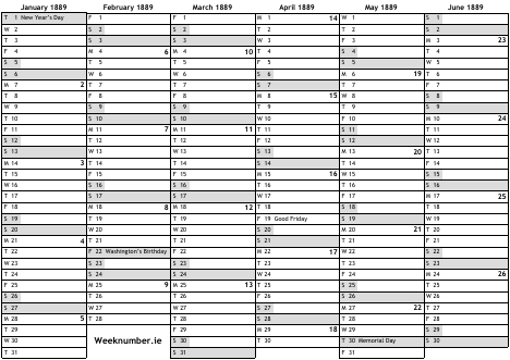 1889 calendar