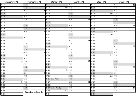 1372 calendar