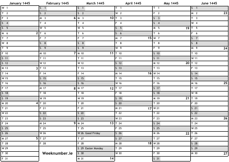 1445 calendar
