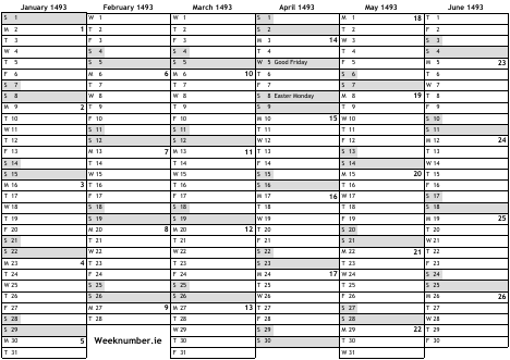 1493 calendar