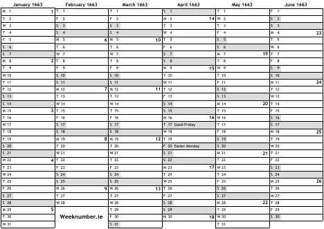 1663 calendar