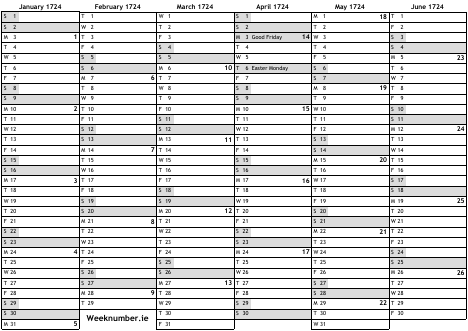 1724 calendar