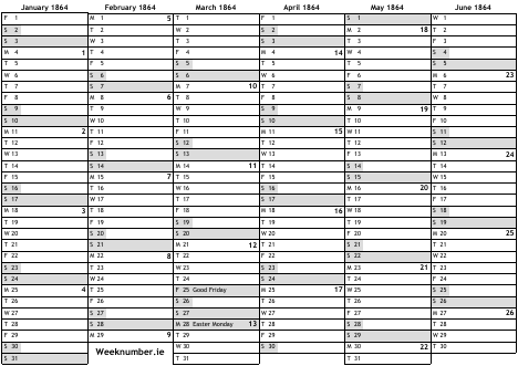 1864 calendar